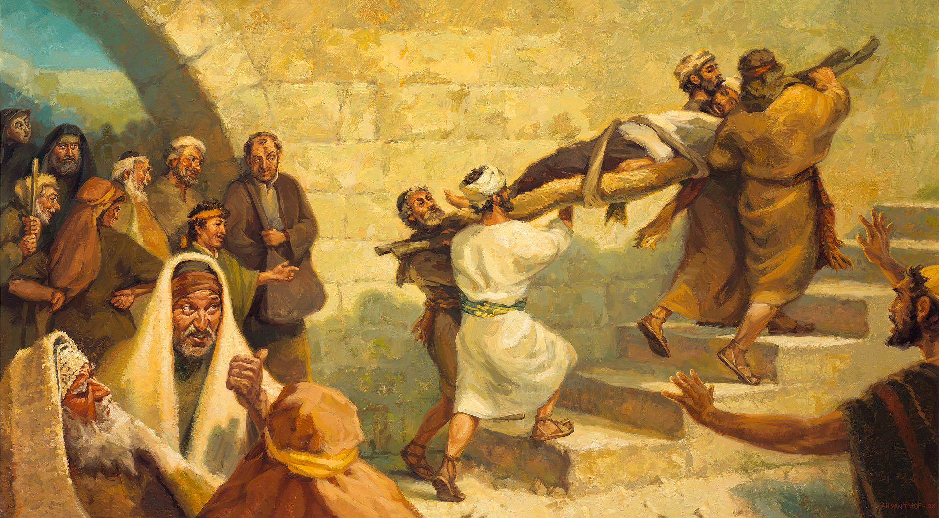 Ka shumë mundësi që ata duhet të durojnë qeshje përbuzëse, shikime të ngulëta dhe tallje. Shokët përpiqen për qëllimin më të rëndësishëm: ta sjellin të paralizuarin te Jezusi.