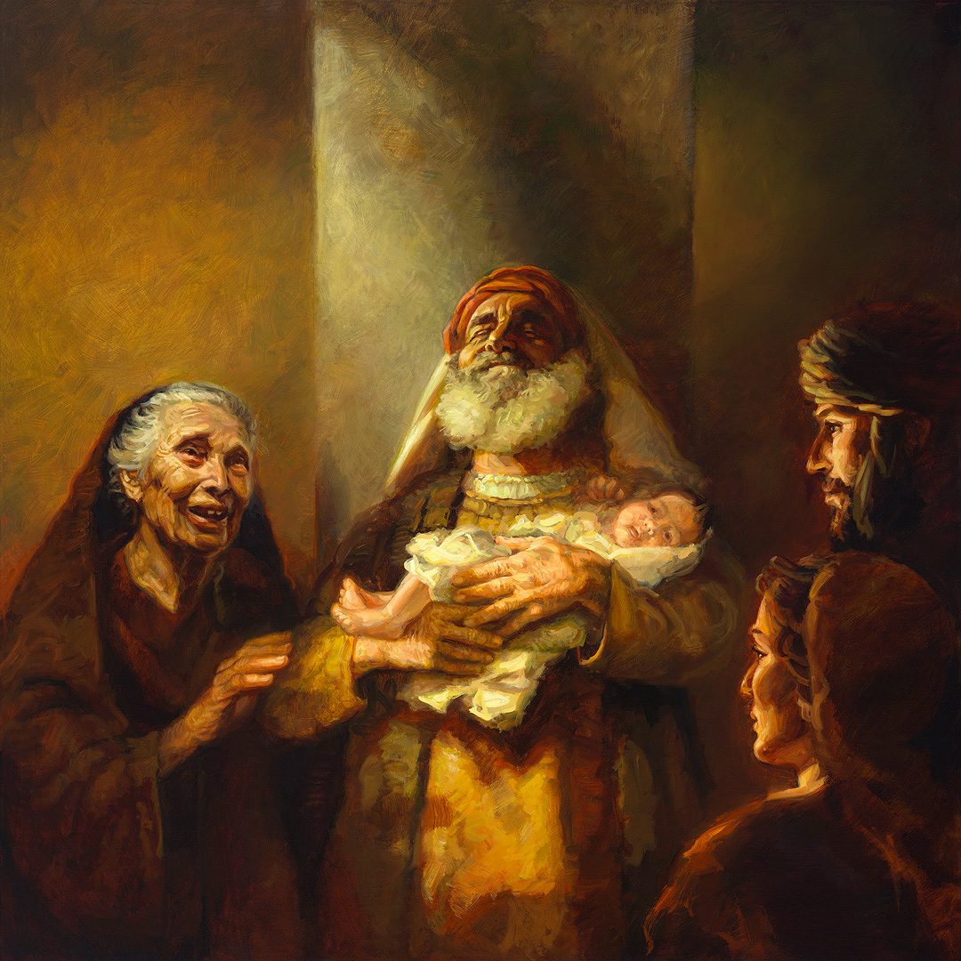 Kur Jezusi i sapolindur ishte dyzetë ditësh, Ai i prezantohet dhe shenjtërohet Atit të tij qiellor në tempullin në Jerusalem. Mes njerëzve që po presin Mesian janë Simeoni dhe Ana. Në ditën kur Jezusi sillet në tempull nga Jozefi dhe Maria, Fryma e Shenjtë e drejton Simeonin për tek tempulli dhe i zbulon atij se ky fëmijë është Mesia i shumëpritur.