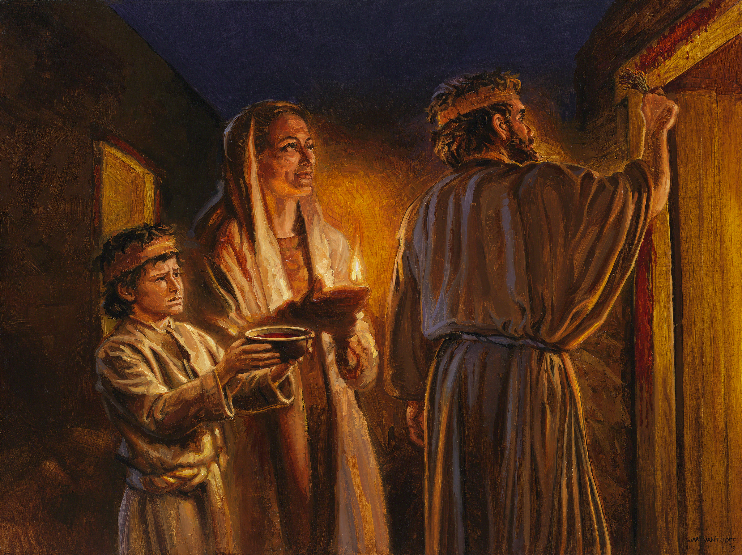 Për shkak të këtij refuzimi Perëndia e godet Egjiptin me dhjetë plagë. Plaga e dhjetë është vrasja e çdo të parëlinduri në tokën e Egjiptit. Izraelitët nuk do të preken nga kjo plagë nëse ata vendosin pak gjak të një qengji të flijuar në anët dhe arkitraun e kornizave të dyerve të shtëpive të tyre.