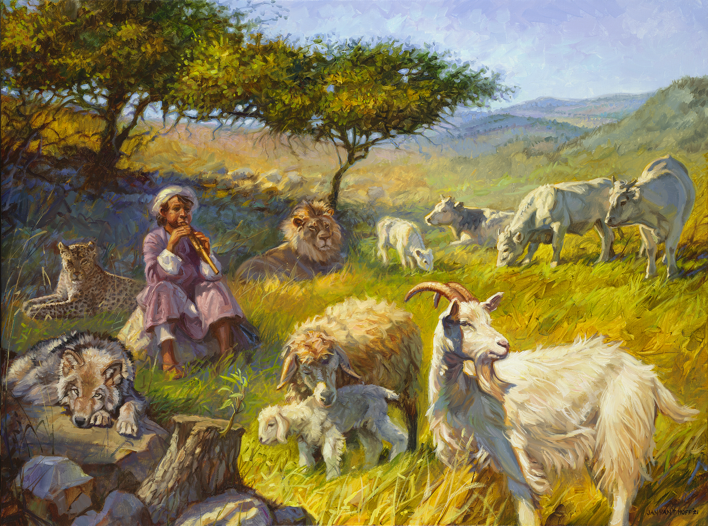 Kjo pikturë është rreth Isaias 11:6, një pjesë e profecisë së Isaias, në të cilën ai përshkruan një vizion të Mbretërisë mesianike të ardhshme. Vizioni jep një pamje të kushteve si në parajsë të botës së ardhme të përtërirë si rrjedhojë e mbretërimit mesianik.